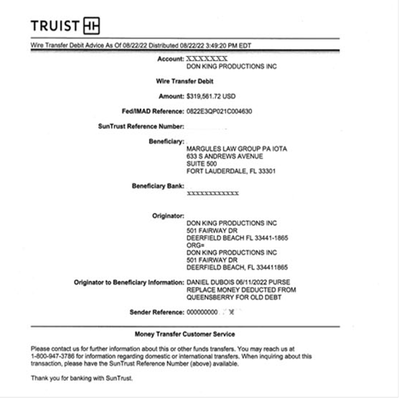 Below is the wire transfer to Margules Law Firm, and receipt of transfer has been confirmed.