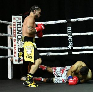 “The Outlaw” Ryan Venable (2-13-1) upset previously undefeated lightweight prospect Calixto Cruz (2-1), of Springfield (MA), dropping Cruz with a stunning right hook in round one. Cruz came back strong, but he fell short on the judges’ scorecards, losing a four-round split decision.